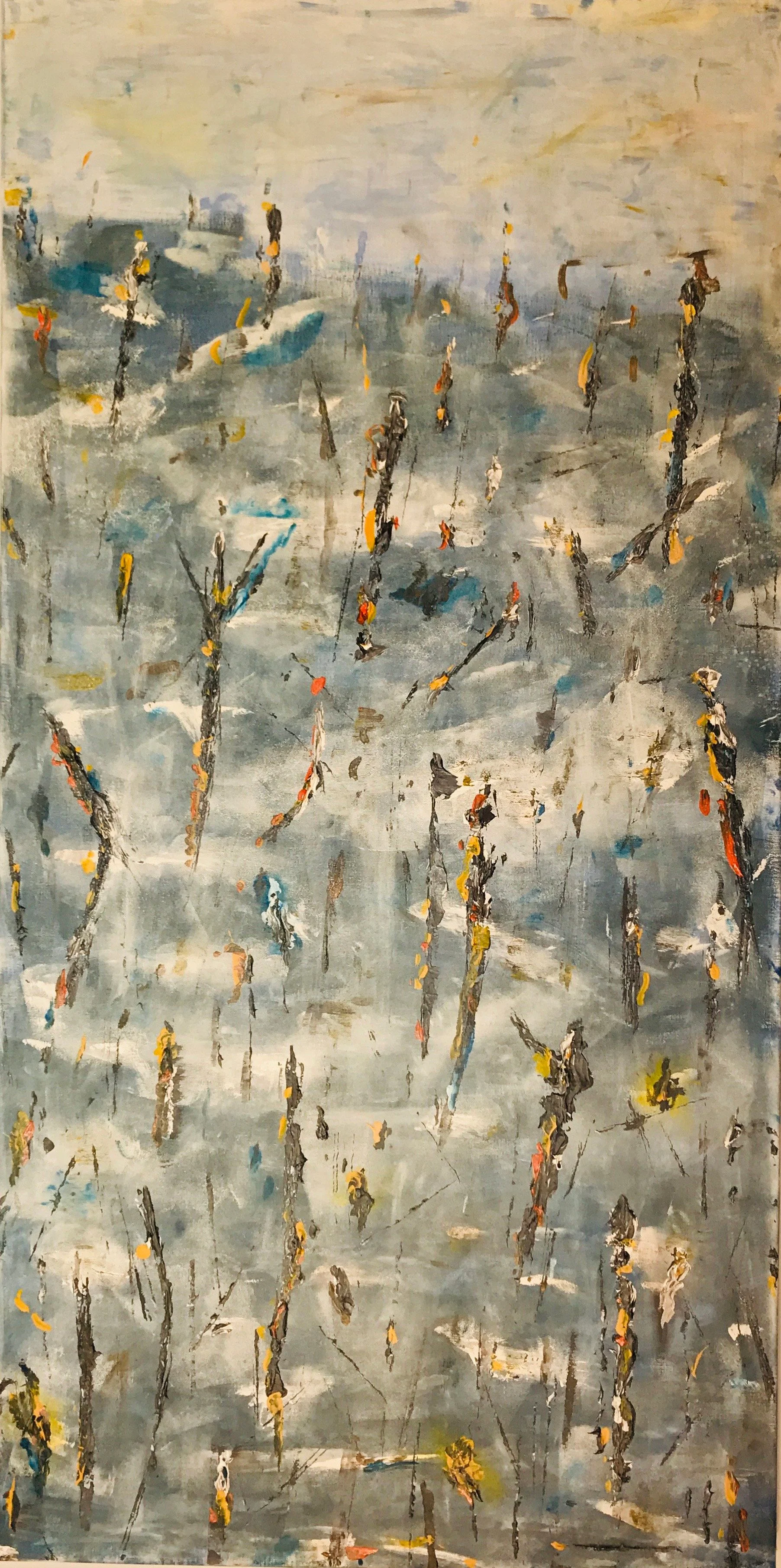 This painting showing Andrews depth of techniques and colour with overlapping dotted mosaic worthy of Roman Bath Halls.
